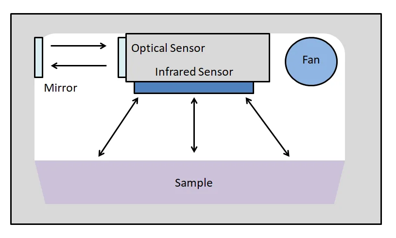 aWLife은 먼저 온도를 설정하고 샘플을 챔버에 넣은 뒤 분석을 시작합니다. infrared sensor가 샘플의 감지하여 증기 평형이 달성될 때까지 밀폐된 챔버 속 온도를 조절합니다. 적외선 광센서를 통해 증기의 평형 상태가 되는 이슬점의 온도를 측정합니다. mirror에 이슬이 맺히는 것을 감지해 Optical snesor가 이때의 온도를 수분활성도로 변환하여 분석을 완료합니다.